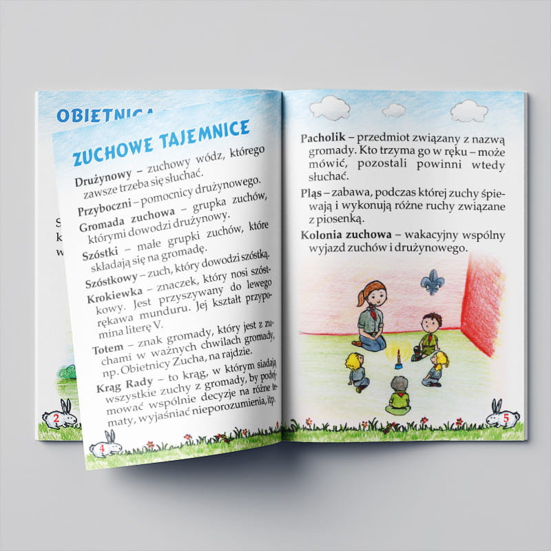 Wszystkie informacje zamieszczone są na kolorowych stronach z ładną grafiką i napisane w przystępny dla zuchów sposób.
