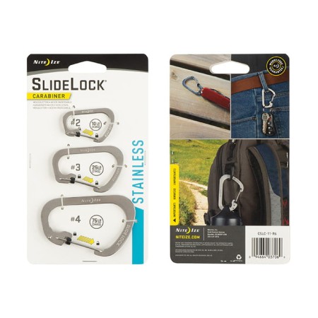 Stalowe karabinki Nite Ize Carabiner o klasycznym kształcie wyposażone w blokadę zamknięcia SlideLock®.