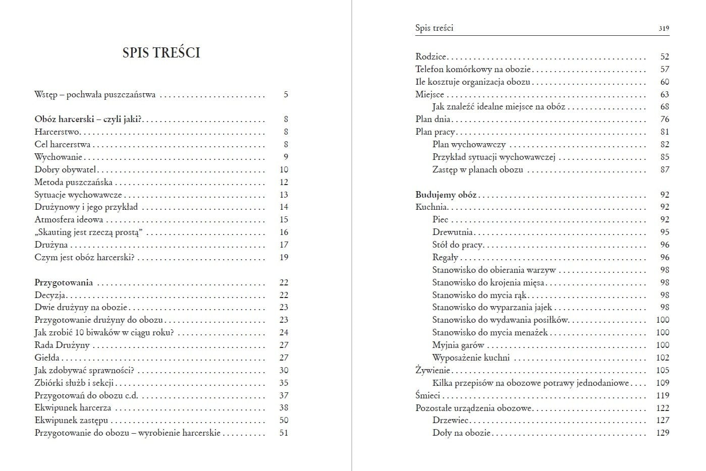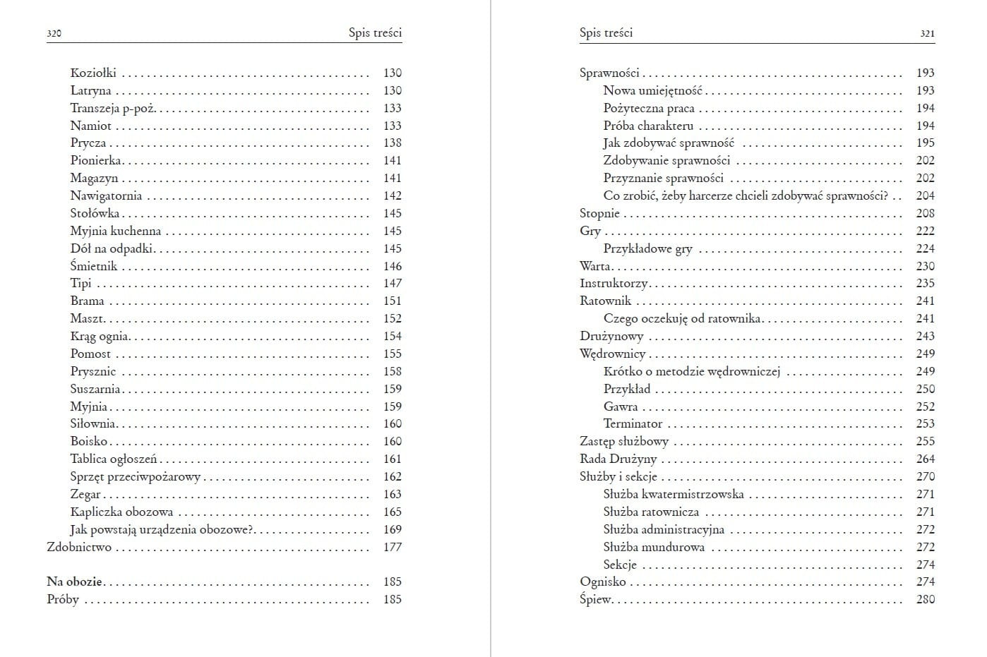 - budowanie obozu (kuchnia, urządzenia obozowe i zdobnictwo) - wszystko poparte prostymi ilustracjami,