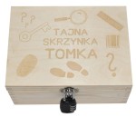 Wszystkie tajne skarby i ważne pamiątki Twojego dziecka znajdą swoje miejsce w drewnianej skrzynce. Na wieku skrzynki wygrawerowane są grafiki (wzór do wyboru) oraz dowolny napis.