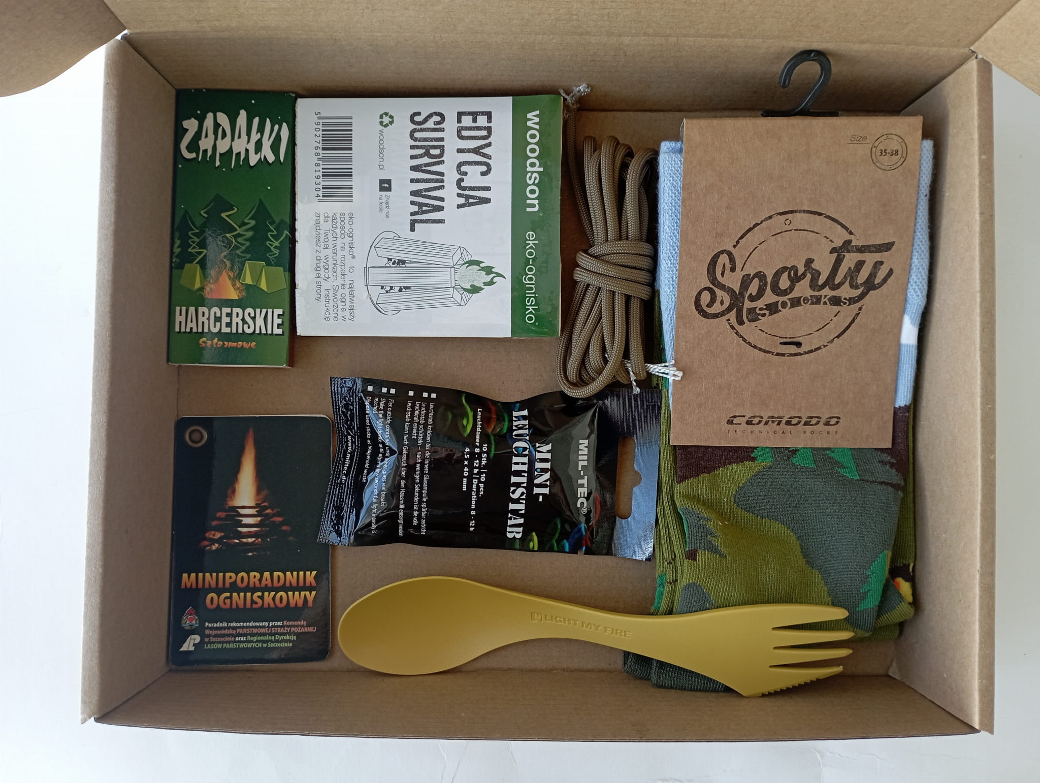 aZestaw prezentowy dla harcerzy, miłośników outdooru, surwiwalu, czy turystów - zawiera 7 przydatnych harcerskich gadżetów.