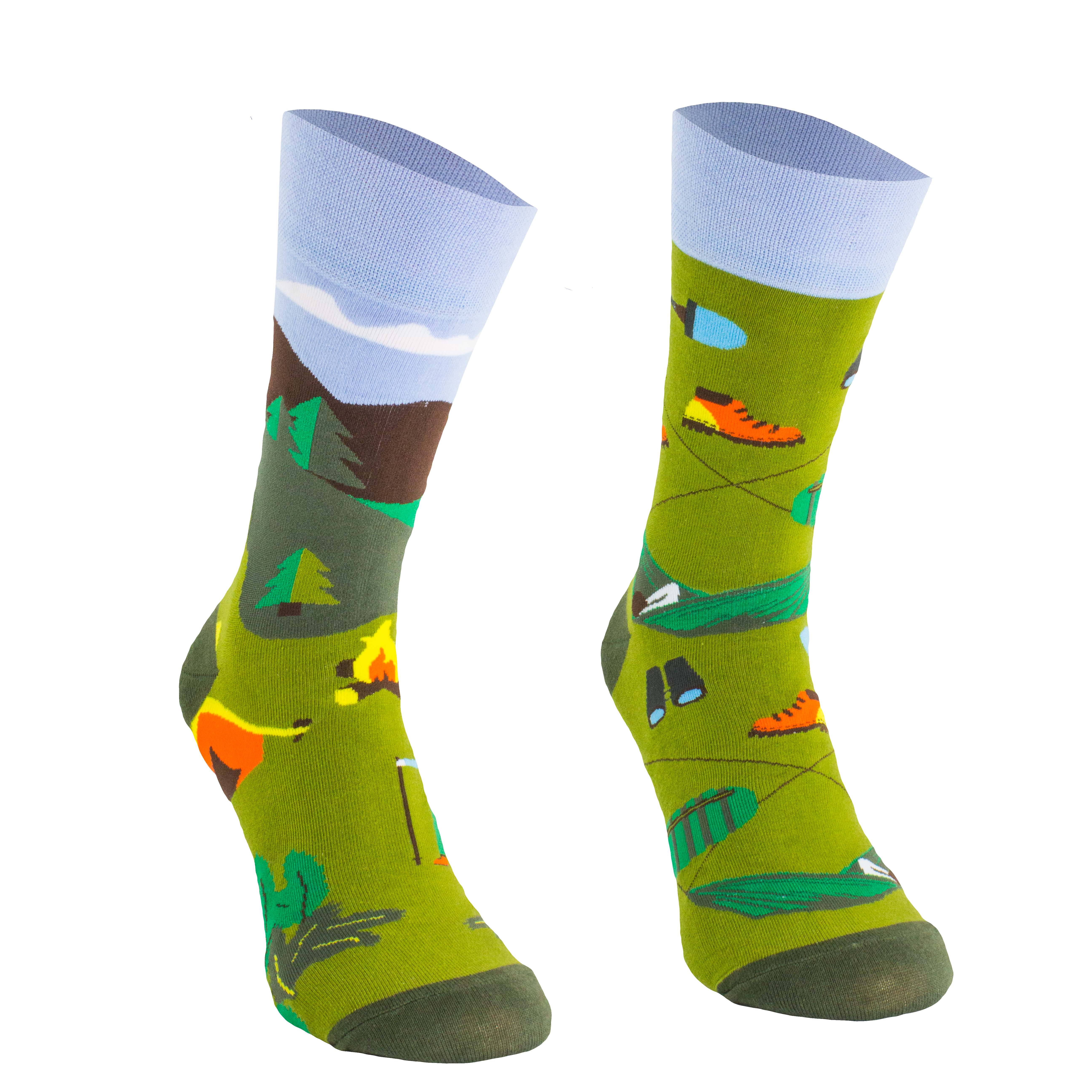 - skarpetki z motywem lasu i campingu polskiej marki COMODO, składające się z: 70% Bawełny 25% Polyamidu 5% Elastanu